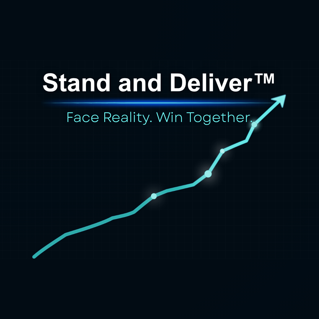 When teams avoid the truth under pressure, decisions don't stick. Rework accumulates. Reality shows up late — as fire drills, not early signals. Stand and Deliver™ is a 4-week virtual sprint for leadership teams that changes what happens in the room: hard truths surface before plans break, difficult conversations happen while they're still useful, and decisions leave with owners and clear trade-offs.